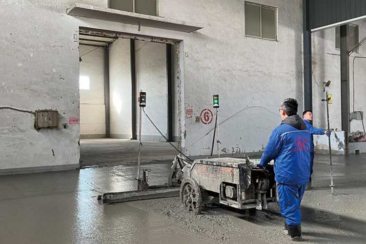 12、激光測控系統(tǒng)自動(dòng)控制標(biāo)高:地坪頂面設(shè)計(jì)標(biāo)高由激光機(jī)電腦自動(dòng)控制,可保證非常高的地面平整度,并可直接在混凝土層上實(shí)現(xiàn)精準(zhǔn)找平,地面平整度不受施工模板震動(dòng)影響,中間不用支模,減少人工材料投入,減少施工程序,加快施工進(jìn)度。