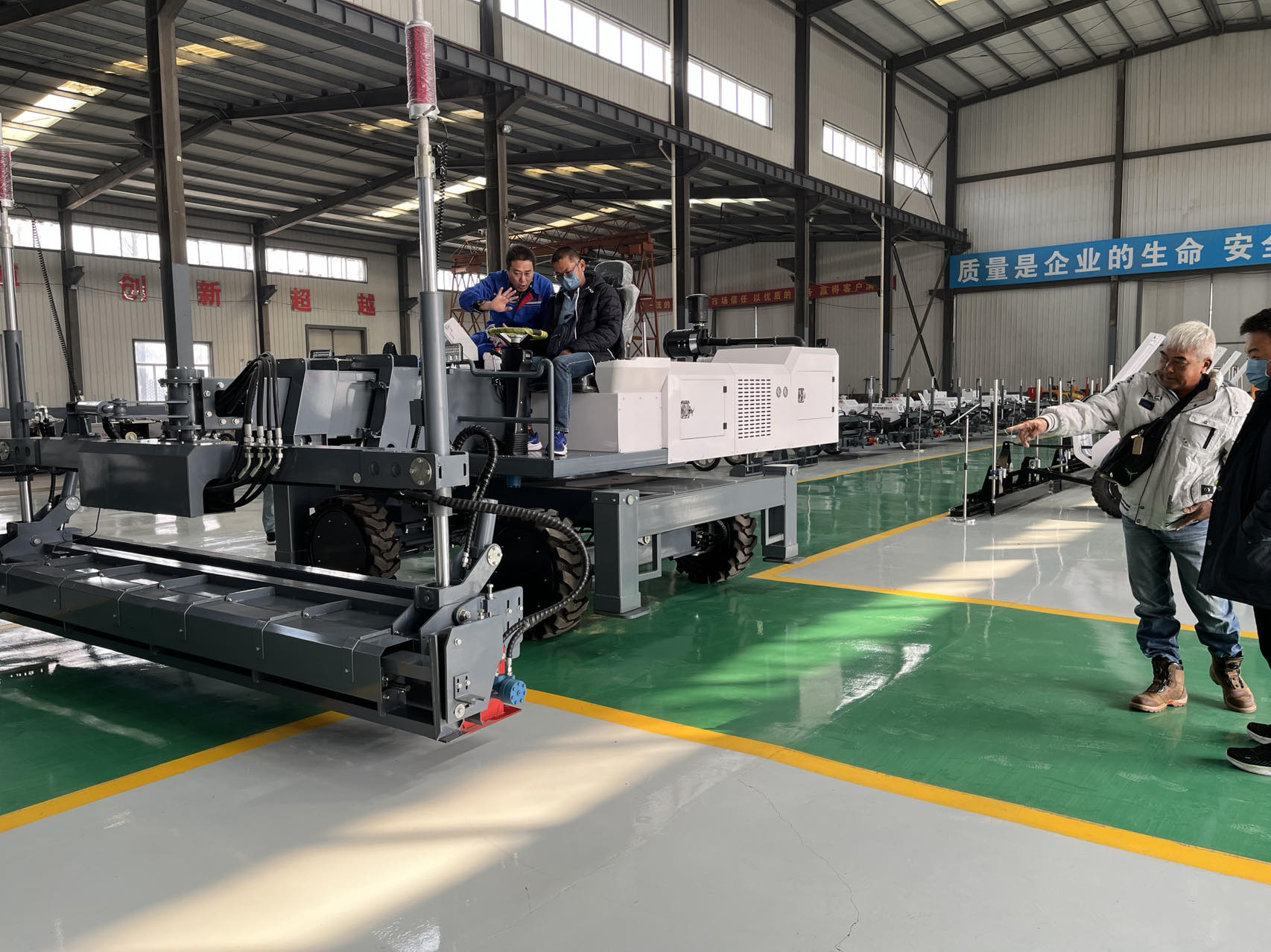 在各部門負(fù)責(zé)人及工作人員的陪同下,客戶參觀了公司:生產(chǎn)車間、組裝車間、制作車間,在參觀過程中,我司陪同人員給客戶進(jìn)行了激光整平機(jī)詳細(xì)的產(chǎn)品介紹,并對客戶提出的疑問進(jìn)行了專業(yè)解答。豐富的專業(yè)知識和有素的工作能力,也為客戶留下了深刻印象。 雙方就未來合作進(jìn)行了深入探討,希望未來在擬合作項(xiàng)目中實(shí)現(xiàn)雙贏、共同發(fā)展。